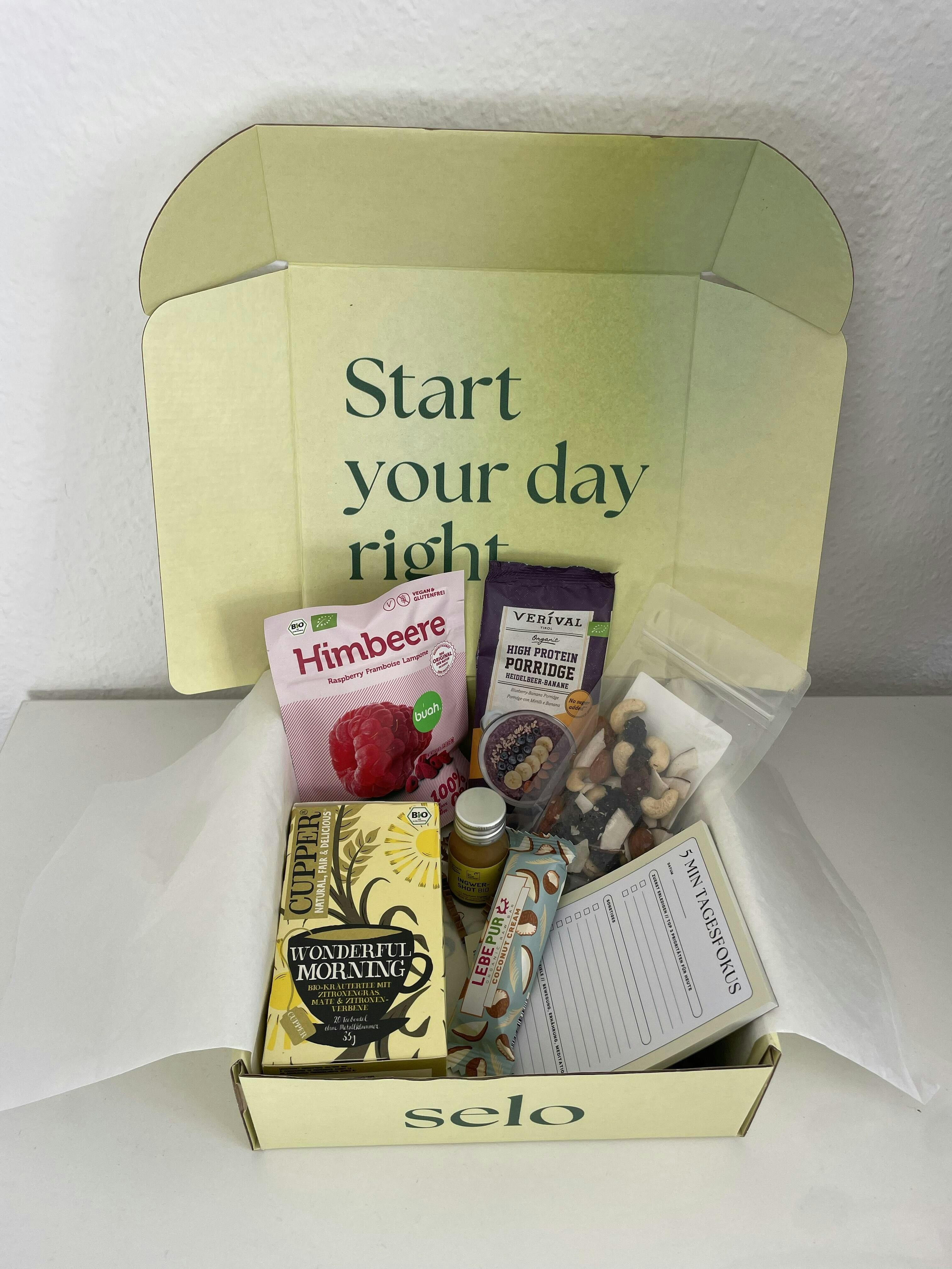 Die Morning-Box kombiniert verschiedene Produkte (u.a. Snacks, Drinks, Supplements) zu einem ganzheitlichen Konzept, das dich perfekt in den Tag starten lässt.
